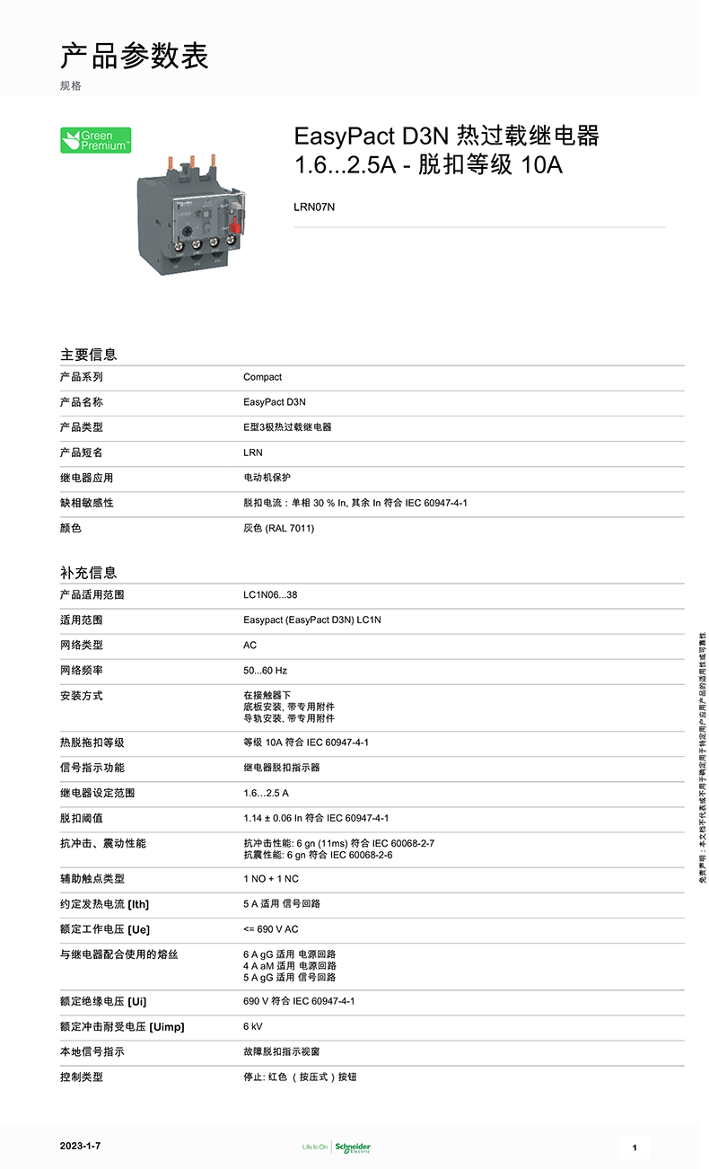 - 施耐德熱過載繼電器LRN12N產(chǎn)品參數(shù)介紹